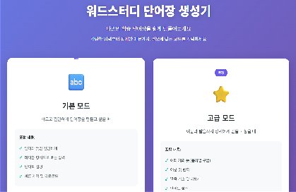 WordStudy 단어장 생성기는 단어장을 생성하는 앱입니다. 단어장을 생성하면 단어장을 학습할 수 있습니다. 나만의 학습 단어장을 쉽게 만들어보세요. 간단한 입력부터 상세한 예문까지, 필요에 맞는 모드를 선택하여 단어장을 만들어 보시기 바랍니다.