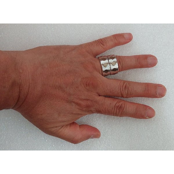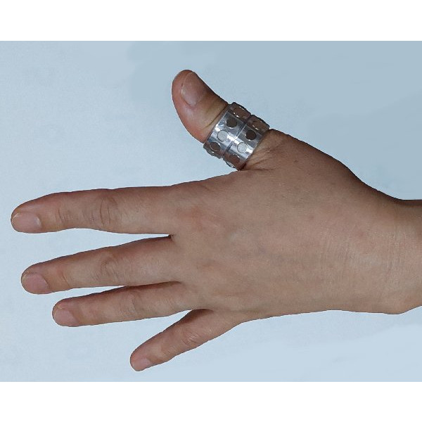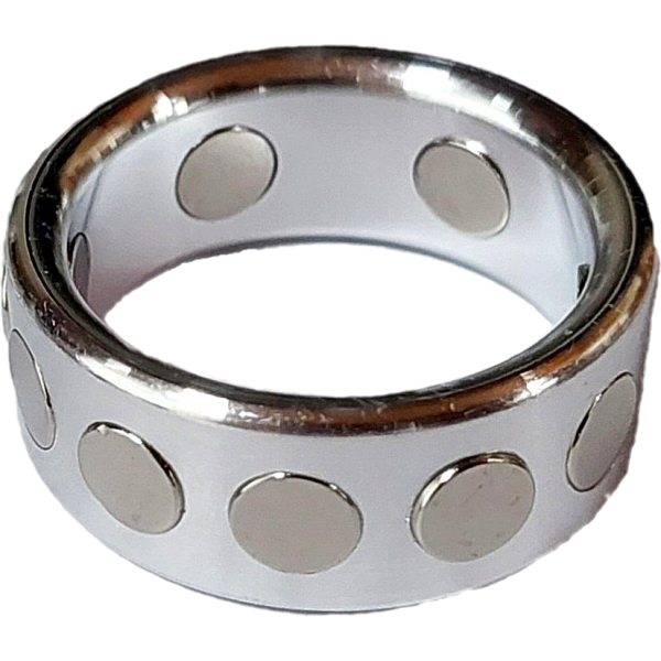 반지의 몸체는 가벼운 알루미늄으로 만들어져 있어요. 그래서 하루 종일 끼고 있어도 전혀 부담스럽지 않답니다. 여기에 니켈이 도금된 자석들이 N극과 S극이 번갈아가며 박혀 있는데요, 이게 바로 핵심입니다!