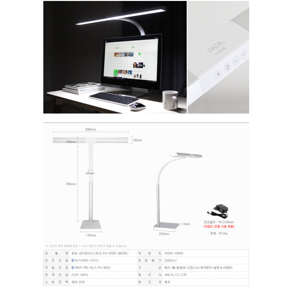 파파 LED와이드스탠드 800B (화이트) 스탠드타입 / 학습용 사무용 요약정보 및 구매