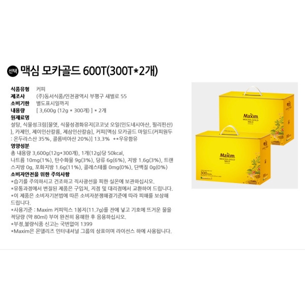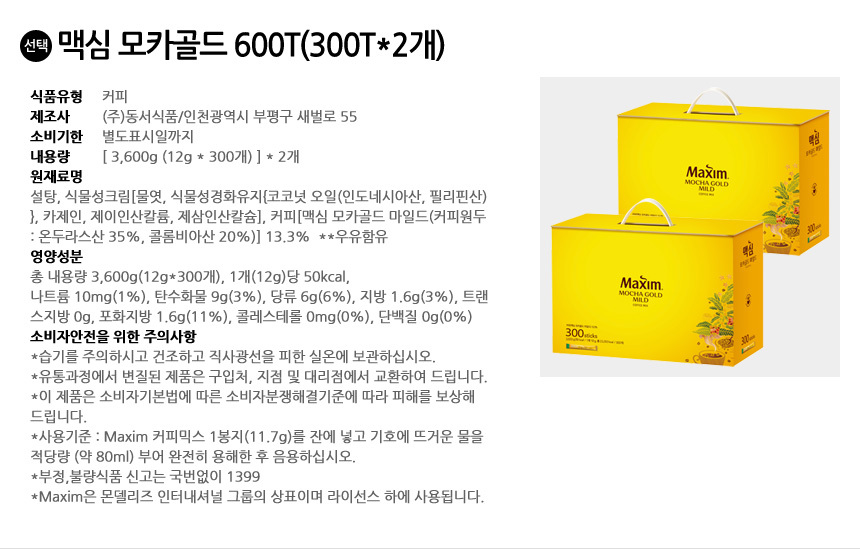 • 맥심 모카골드 600T(300Tx2개)
