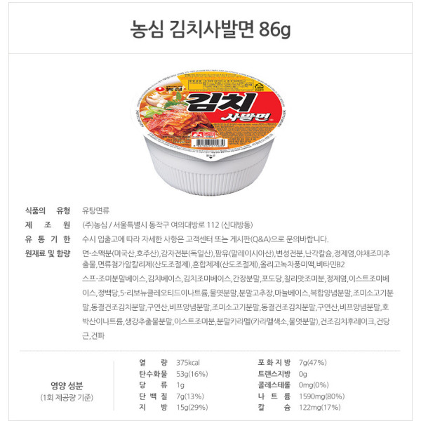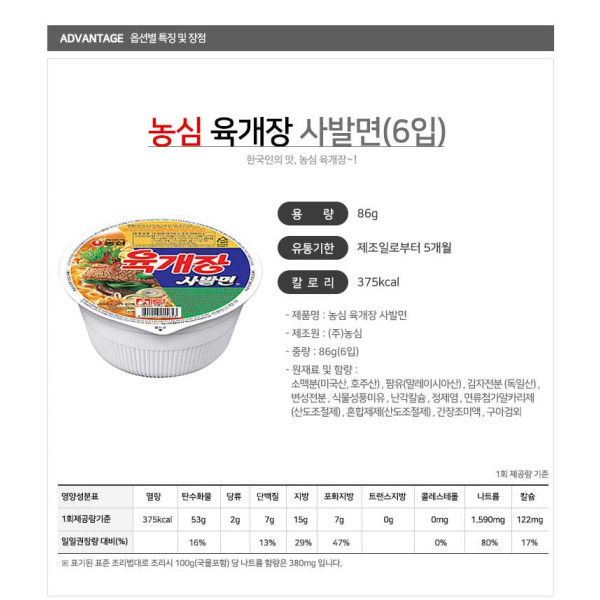 [생활식품1등 기술평가우수기업 1위파워샵] 품질 유통기한보증 농심 공식대리점 컵라면 육개장사발면6입 요약정보 및 구매