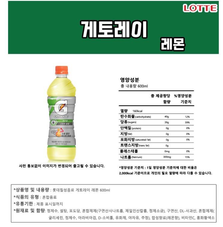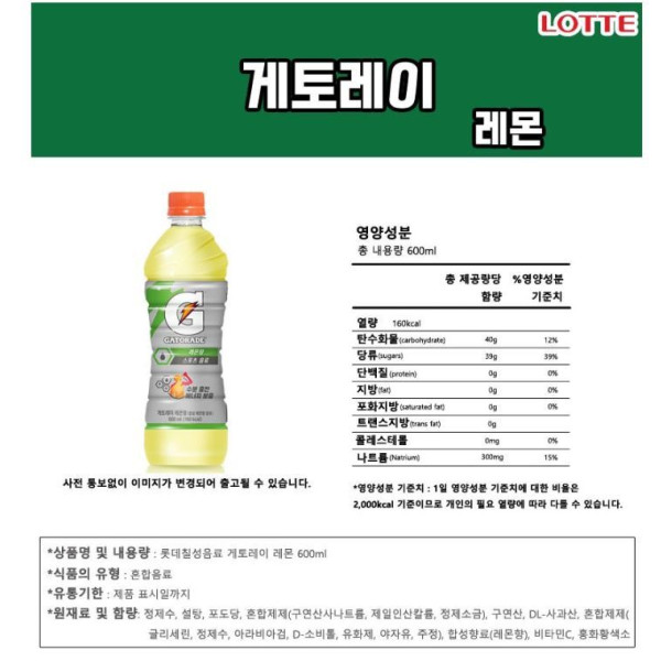 롯데칠성 게토레이 레몬 600ml 6입 요약정보 및 구매
