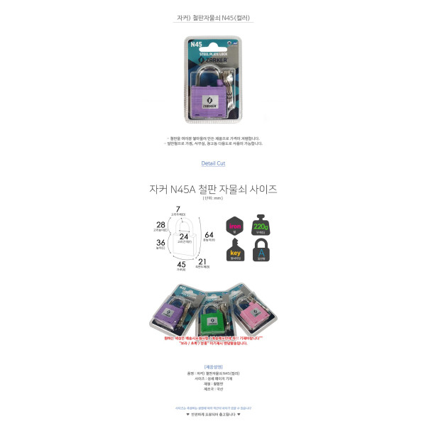 컬러 자커 철판자물쇠 N45 다이얼자물쇠 보조잠금장치 요약정보 및 구매